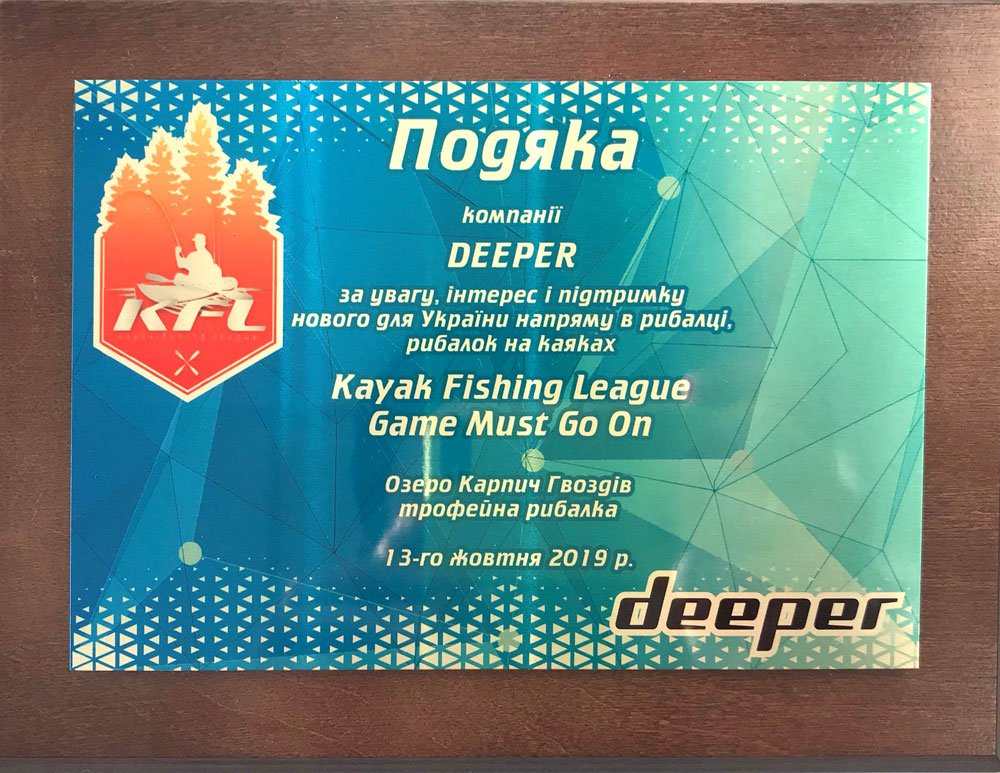 Game Must Go On (Каяк Фишинг Лиг), який організували та провели команди компаній Сібас (SIBAS), Карта Рибалки та Kayak Fishing League. Спонсором заходу виступила компанія Навіоніка, надавши для змагань комплект