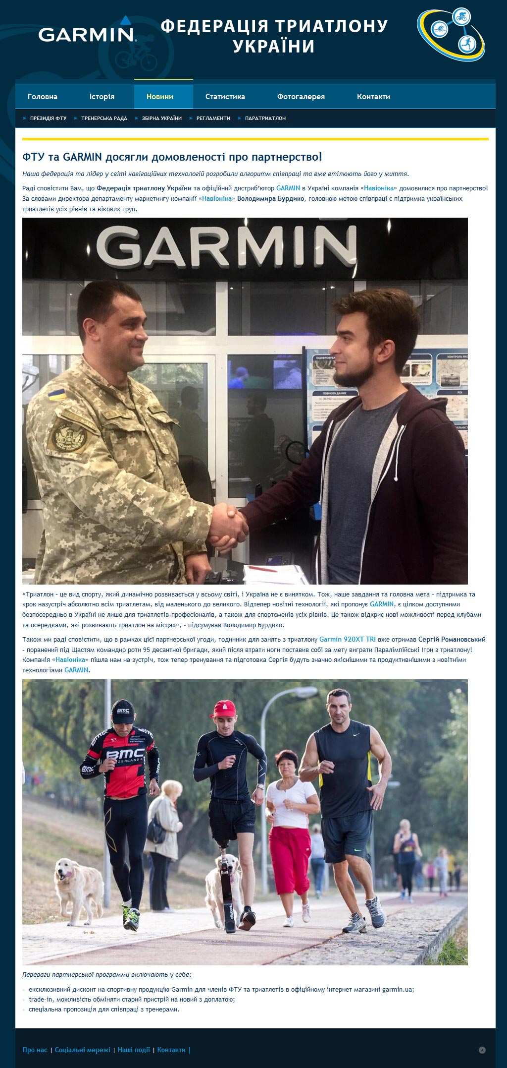 На сайте Федерации триатлона Украины опубликована новость о партнерстве ФТУ и компании «Навионика». Главной целью сотрудничества является поддержка украинских триатлетов всех уровней и возрастных групп.