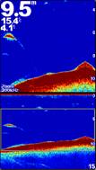 Наверное, стоит напомнить, что все эхолоты Garmin новых серий произведены на основе новейшей эксклюзивной технологии Garmin HD-ID, которая предусматривает значительное повышение чувствительности приборов. Основана эта технология на применении более мощных процессоров и более сложных интеллектуальных программ, позволивших принимать и выделять даже очень слабые отражения, в том числе по краям луча и непосредственно от дна. И, как результат, на этой основе удалось получить более четкую и детальную прорисовку дна, предметов в толще воды и больший угол охвата.