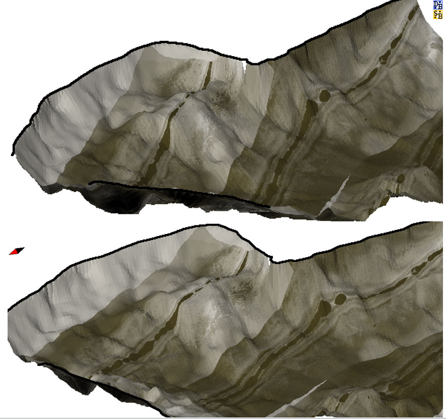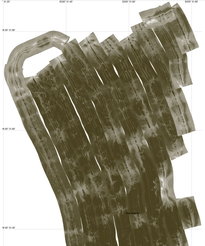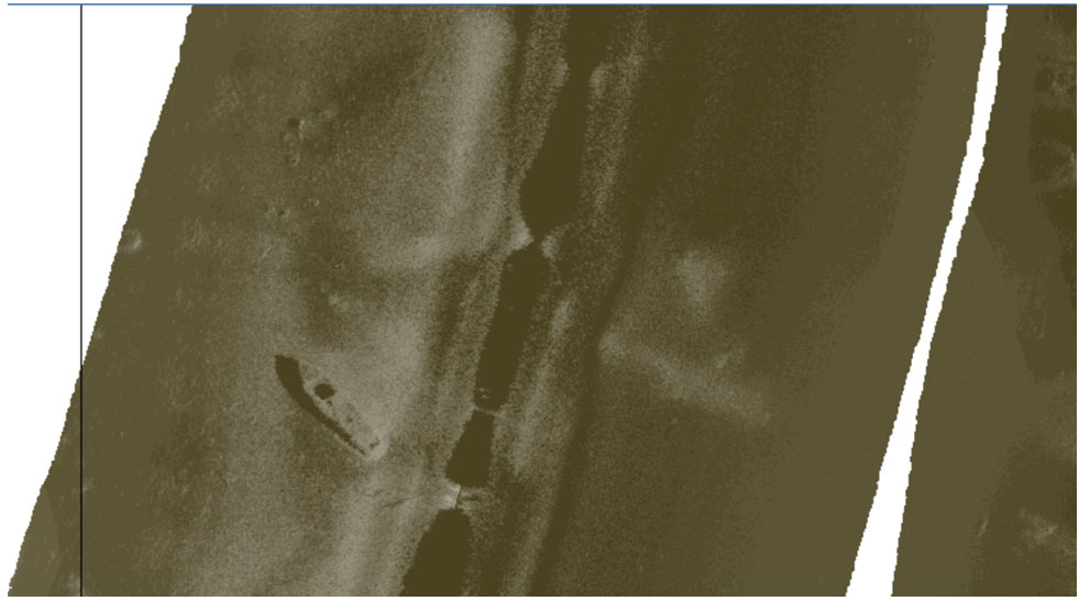 Мне сложно передать в статье всю грандиозность такой карты, так как в программе-просмотровщике можно крутить-вертеть, наклонять ее как угодно и тем самым создавать себе полное понимание формы данного рельефа, скрытого под водой. Наложение скан изображения дает возможность понять, как лежит объект на дне. Становится понятно, что он лежит на свале, в яме или на бугре. Но опять же повторю, что «самодельное» 3Д в Лоренс пока загрузить не удается, только 2Д.
