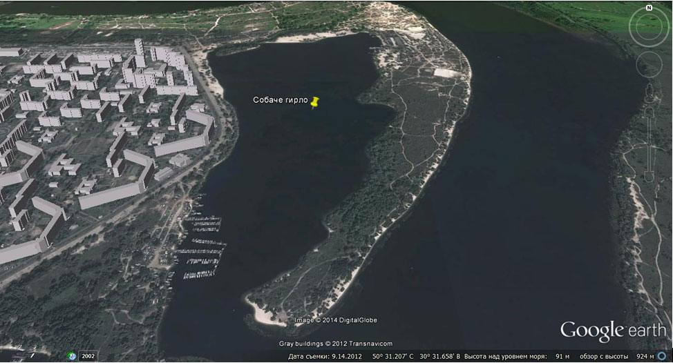 В основном, буду стараться показывать возможности карт на примере хорошо знакомого рыболовам залива в Киеве на Оболони «Собачье гирло», точнее его северной части. Как всегда принцип – меньше текста, больше картинок. Увеличить картинки можно кликнув на них.