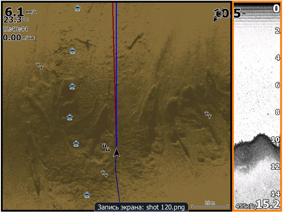 По сути, это просто GPS-точки, расставленные на картплоттере по рельефу, который мы определили эхолотом. Их можно и нужно использовать для правильной постановки лодки или ведения ее по этим точкам. Наподобие ориентации по линии глубины (изобате) или сохраненного структурного изображения.