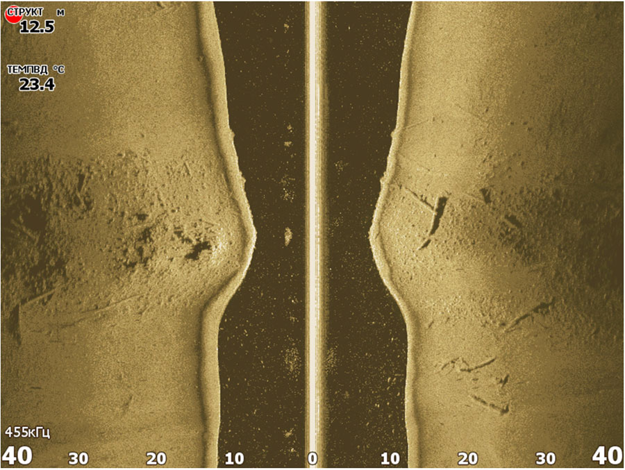 Стоит сказать, что залив достаточно заиленный, на русле реки качество изображения будет выше. Также качество изображения зависит от того, какой программой делалась карта.
