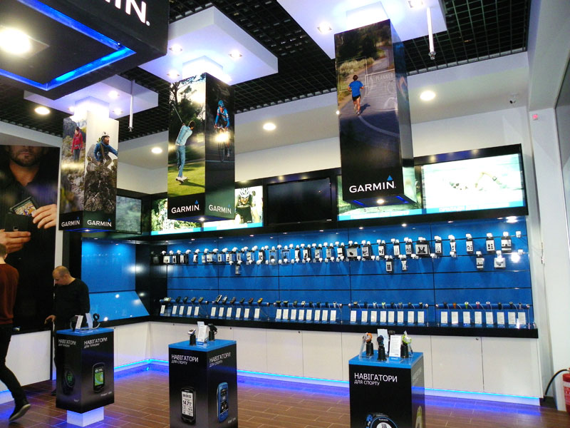 Зал магазина оформлен в уникальном фирменном стиле Garmin, где все продукция находится в свободном доступе и каждый может протестировать любой прибор и получить профессиональную консультацию. Эксперты команды Garmin осуществляют полный спектр сервисных услуг прямо в магазине: настройка приборов, обновление, продажа и установка оригинальных карт автомобильных дорог Украины «НавЛюкс» для навигаторов Garmin.