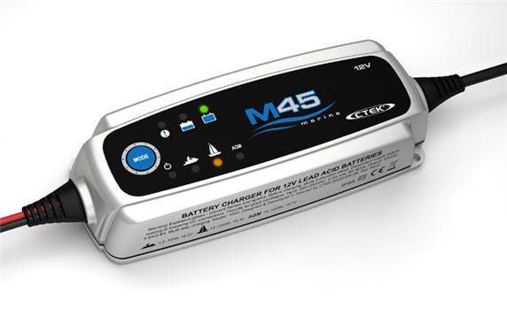 У складних морських умовах навіть невеликі човни і катери з батареєю 12В потребують надійний зарядний пристрій. СТЕК М45 являє собою зарядний пристрій з 4 стадіями зарядки та унікальними функціями, такими як ДЕСУЛЬФАТАЦІЯ та безпечна підтримка заряду між сезонами.