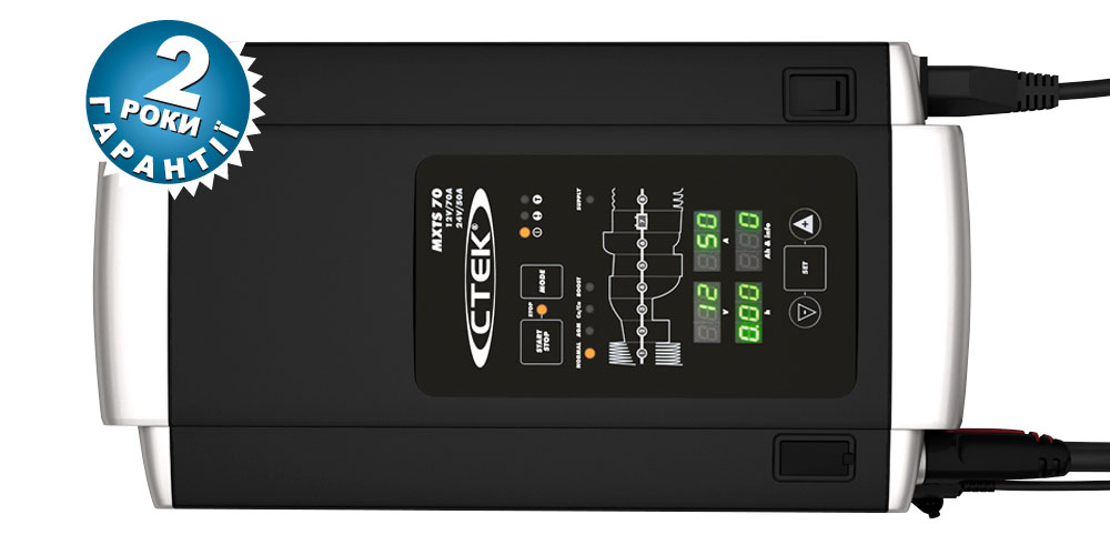CTEK MXTS 70/50 - потужний професійний зарядний пристрій для обслуговування 12В і 24В акумуляторних батарей в умовах автосервісних майстерень.