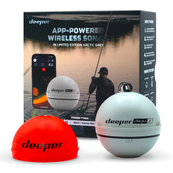 Трипроменевий 675 кГц (7°)/240 кГц (20°)/100 кГц (47°) закидний ехолот Deeper CHIRP+ 2 дуже компактний і легкий (92 г) у зв’язці з застосунком Fish Deeper™ надає ідеальної чіткості зображення і точності дані.