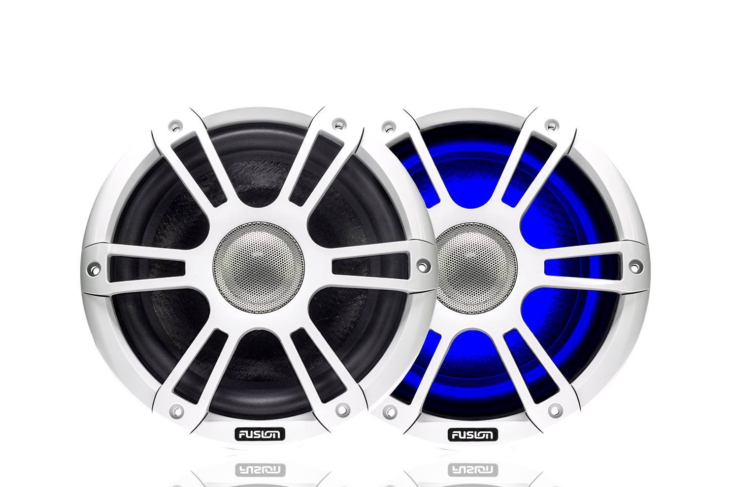 Динаміки Fusion Signature SG-CL65SPW 6.5'', розроблені в спортивному стилі, мають підсвічування світлодіодного індикатора Striking Blue або Sparkling White. Технологія конуса CURV та внутрішня поверхня динаміка Silk Dome Tweeter забезпечують поліпшену частотну характеристику спектра звуку та неймовірну стійкість до впливу морського середовища.