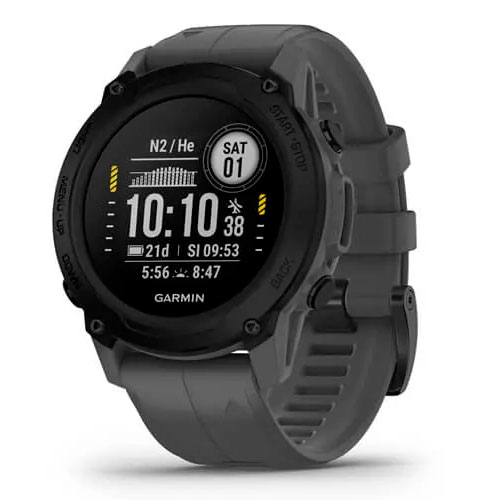 - Журнал занурень дозволяє зберігати та пізніше переглядати дані про 200 занурень та ділитися ними через Garmin Dive™.