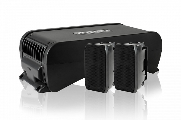 Морський сабвуфер FUSION MS-AB206 з 4-канальним посилювачем класу D та 6-дюймовим низькочастотним динаміком, двома звуковими катушками та пасивним випромінювачем створює виняткове басове відтворення звуку в парі з динаміками MS-BX3020.